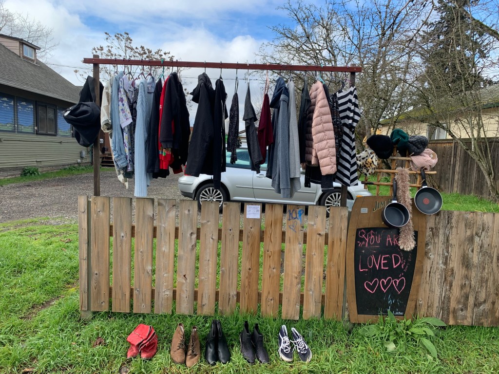 The free store outside of my home provides clothing, materials, and resources to my neighbors. Together we also self-organized street feeds, campaigns to stop the sweeps, river clean ups and a pop-up nail care and barber shop as well as many other events.
