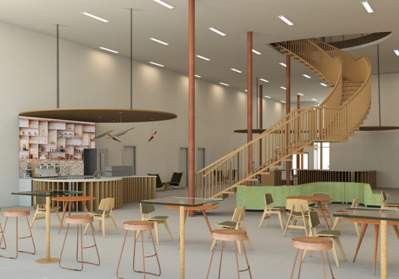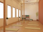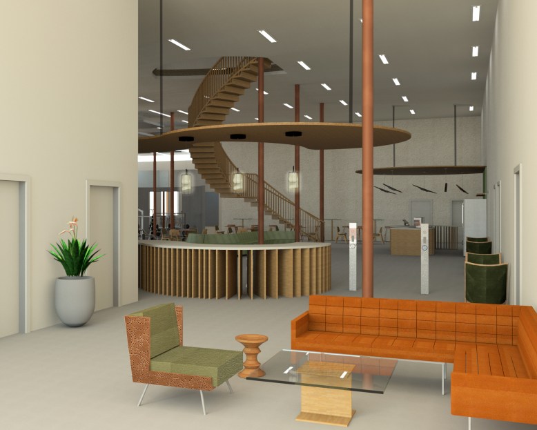 I considered sustainability by mainly using natural, recycled, and reusable materials like wood and cork. Also, by the abundant use of natural light and by incorporating an outdoor gym. I promoted positive human behavior by access and views to the outdoors, improving the air quality, and having proper acoustical elements.