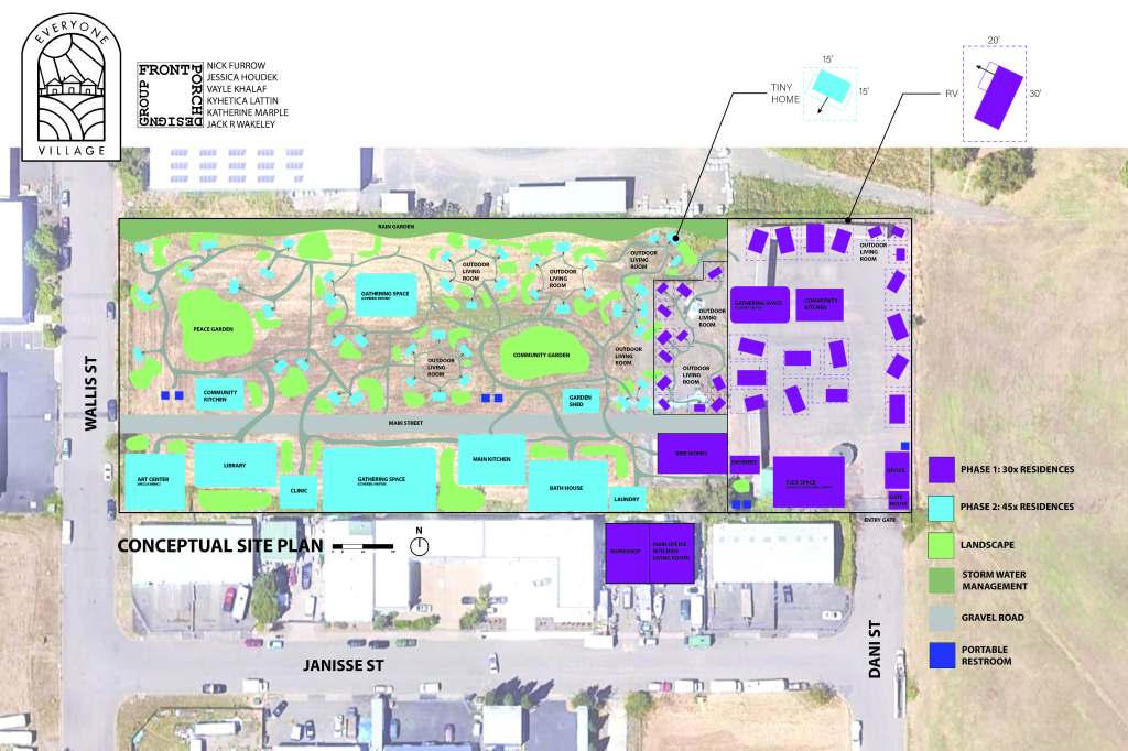 We are currently designing a tiny home village in our community Eugene, Oregon. Everyone Village will be a safe, sheltered community providing residents with 24/7 staffing and an effective mutual benefit model for the surrounding community.